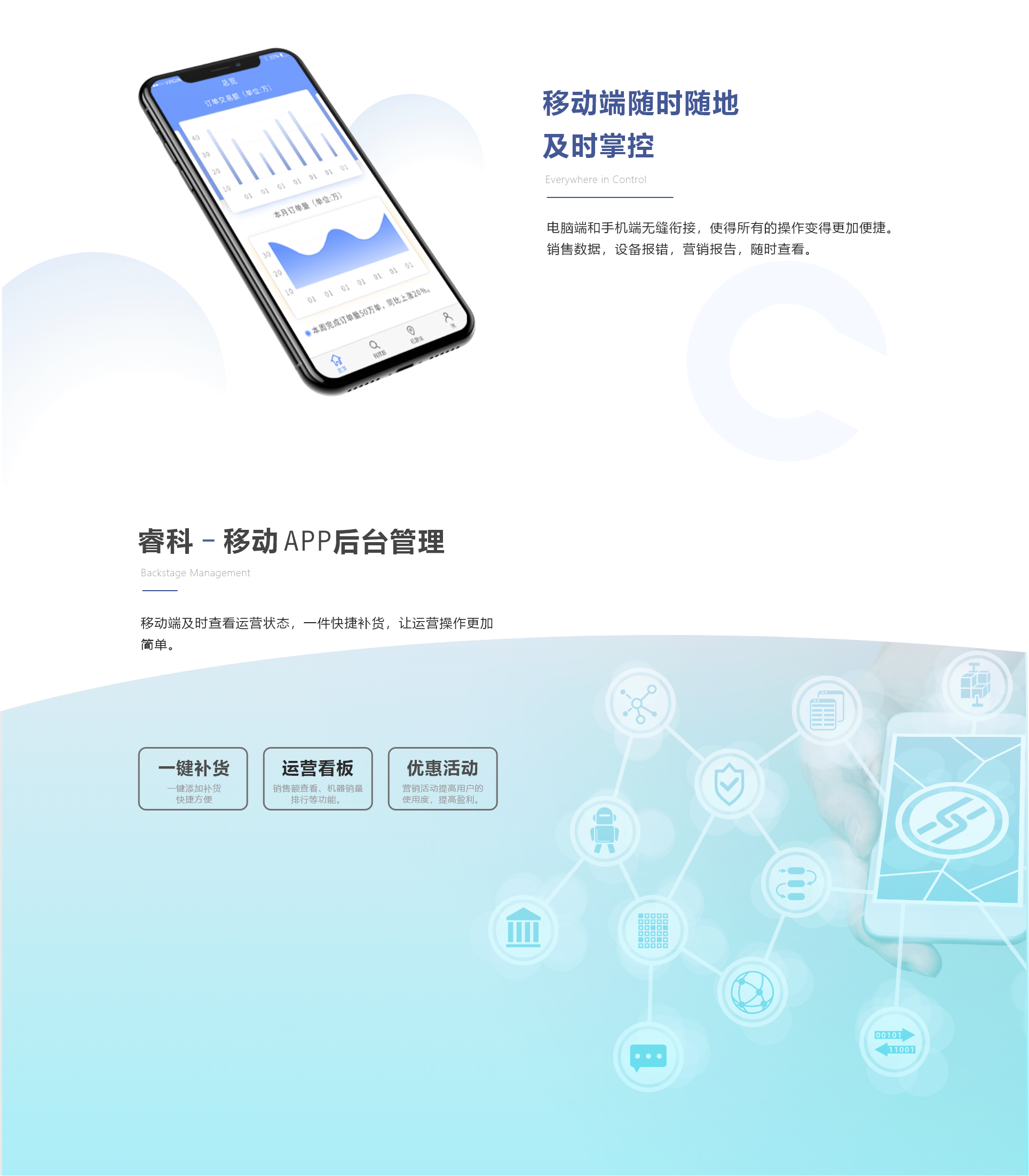 可以實時查看監(jiān)控售貨機的運營狀況,根據(jù)數(shù)據(jù)調(diào)整售貨機售貨機的溫控,燈光情況,節(jié)省運營成本,獲得盈利。